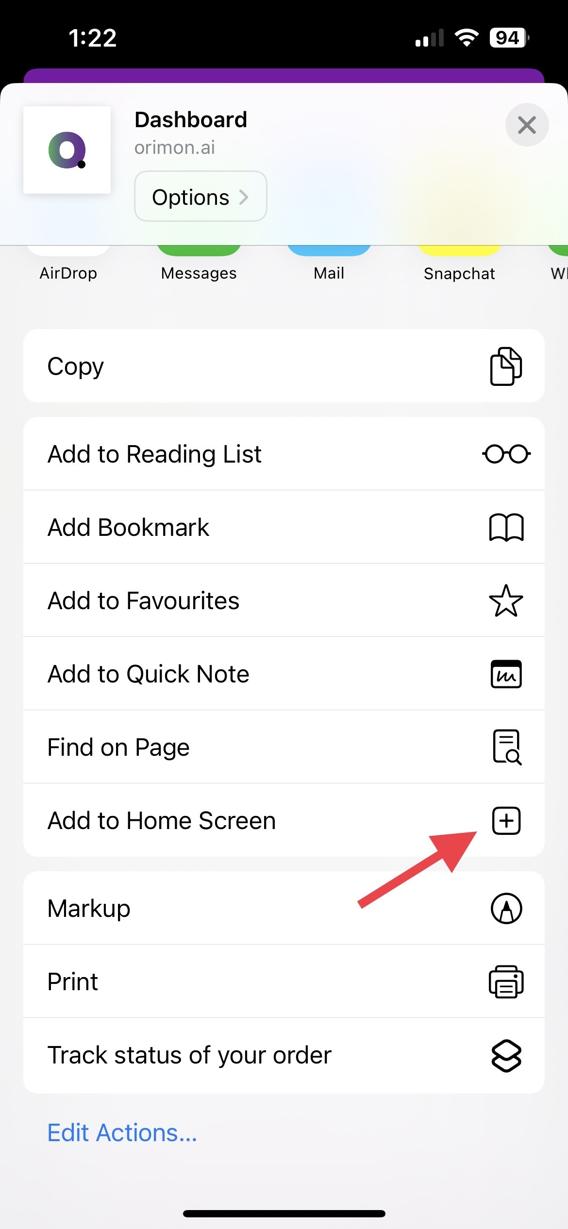 You will now see Orimon as an app on your Home Screen.